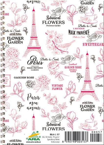 Blok A6, 50 listů spirála vlevo.
