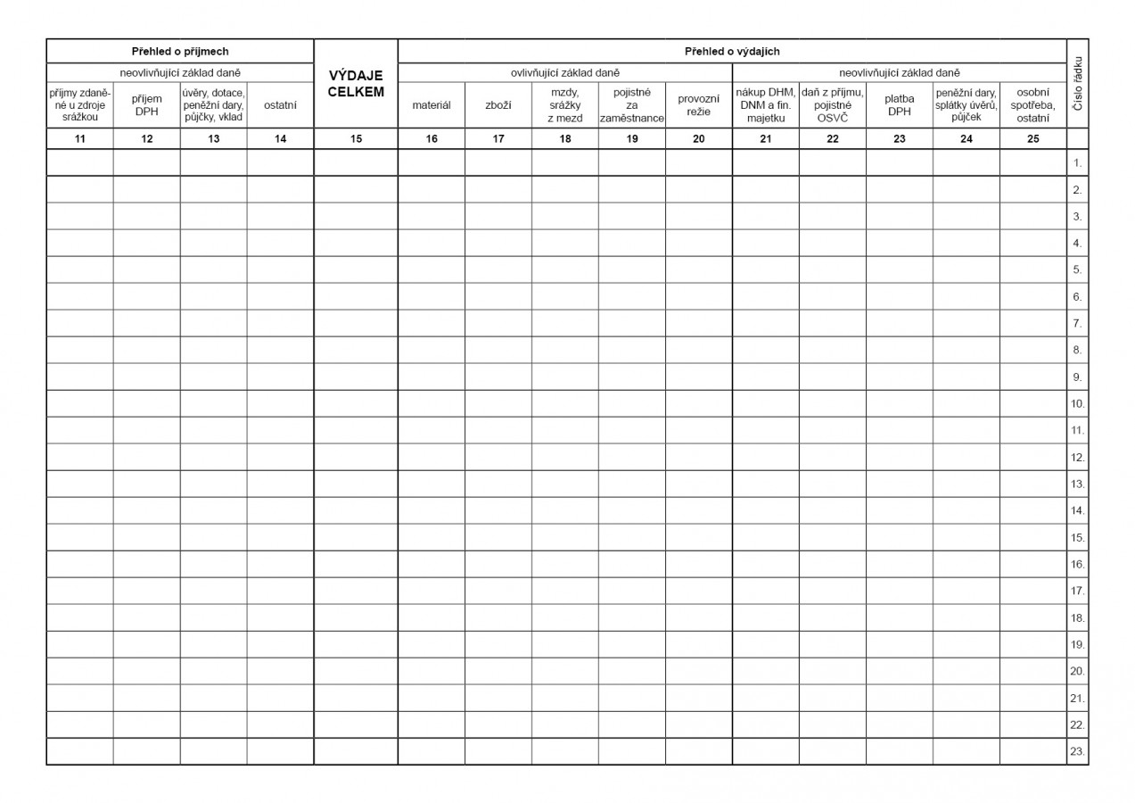 Daňová evidence (peněžní deník) pro plátce DPH, 20 listů, oboustranný, formát A4, ekologický tiskopis.