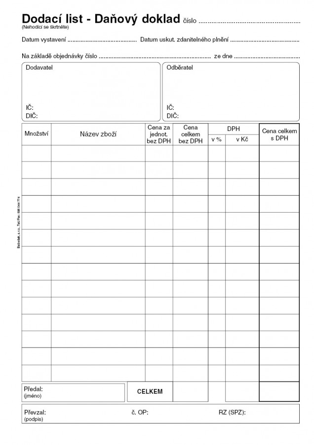 Dodací list - daňový doklad 50 listů, formát A5, přímopropisující tiskopis.