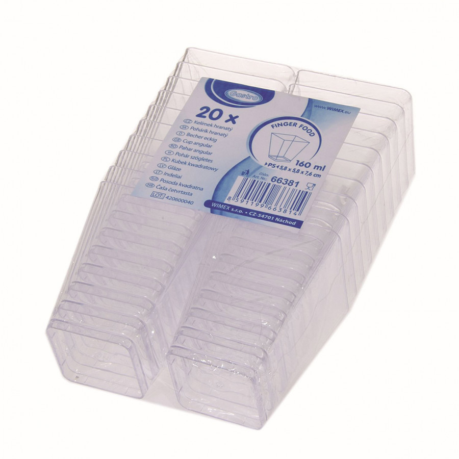 Kelímek hranatý čirý 58x58x76 mm, 160ml, 20 ks v balení