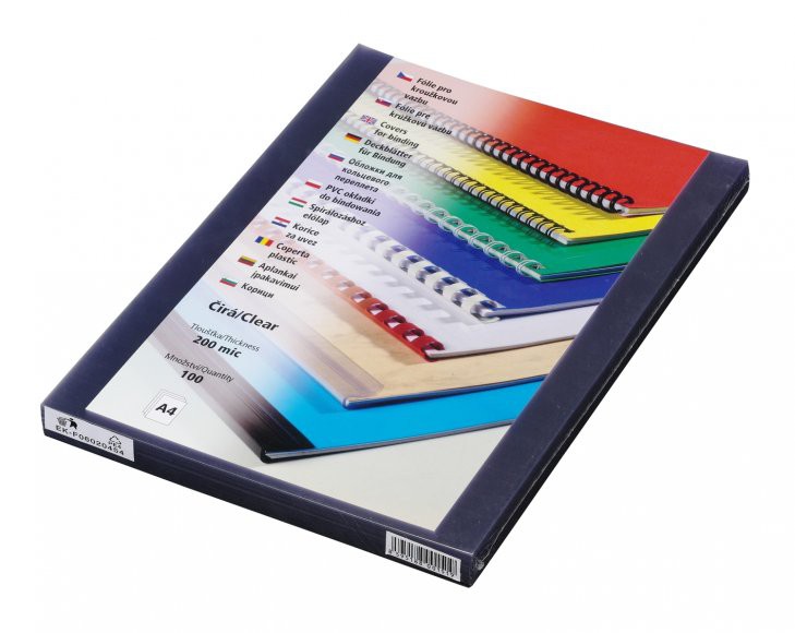 Pro jedinečný vzhled, mechanickou ochranu a nezbytnou pevnost fólie PRESTIGE čirá - PVC fólie, optimální jako přední strana vazby. 1 bal.=100 ks, 200mic
