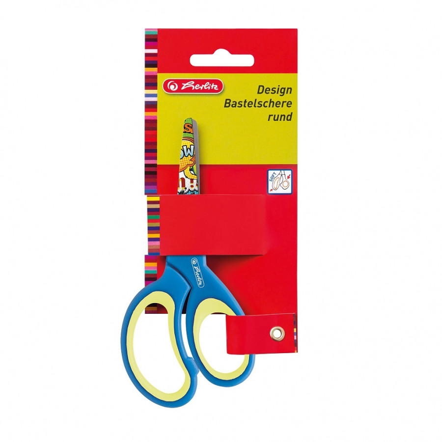 školní nůžky 13 cm s kulatou špičkou pro praváky, soft úchop, barevný potisk.