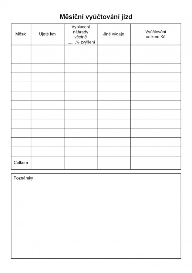 Kniha jízd, 52 stran, formát A5, ekologický tiskopis.