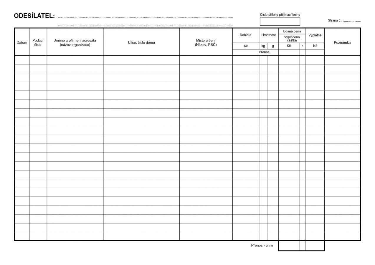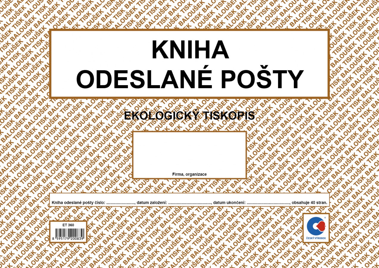 Kniha odeslané pošty, 40 stran, formát A4, ekologický tiskopis.