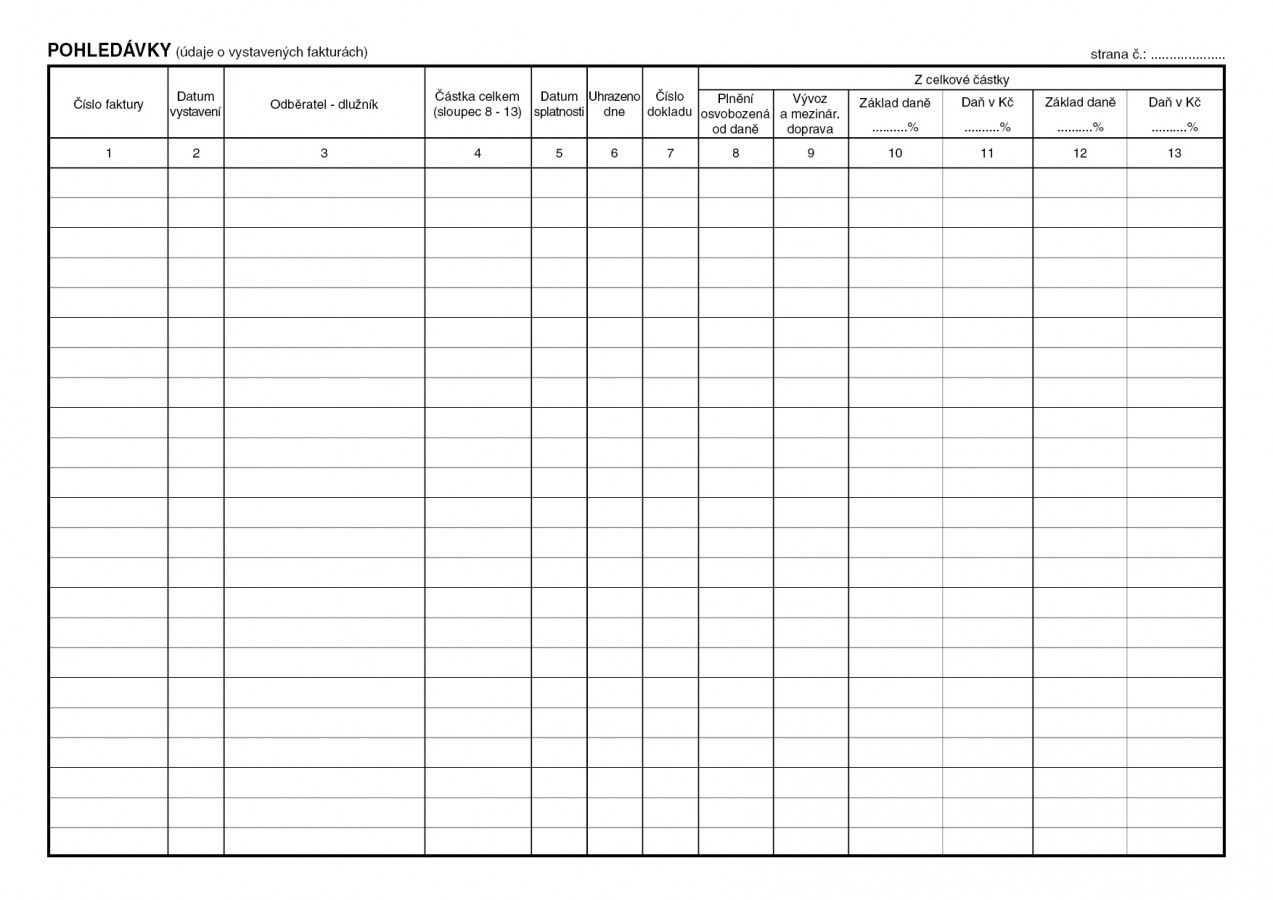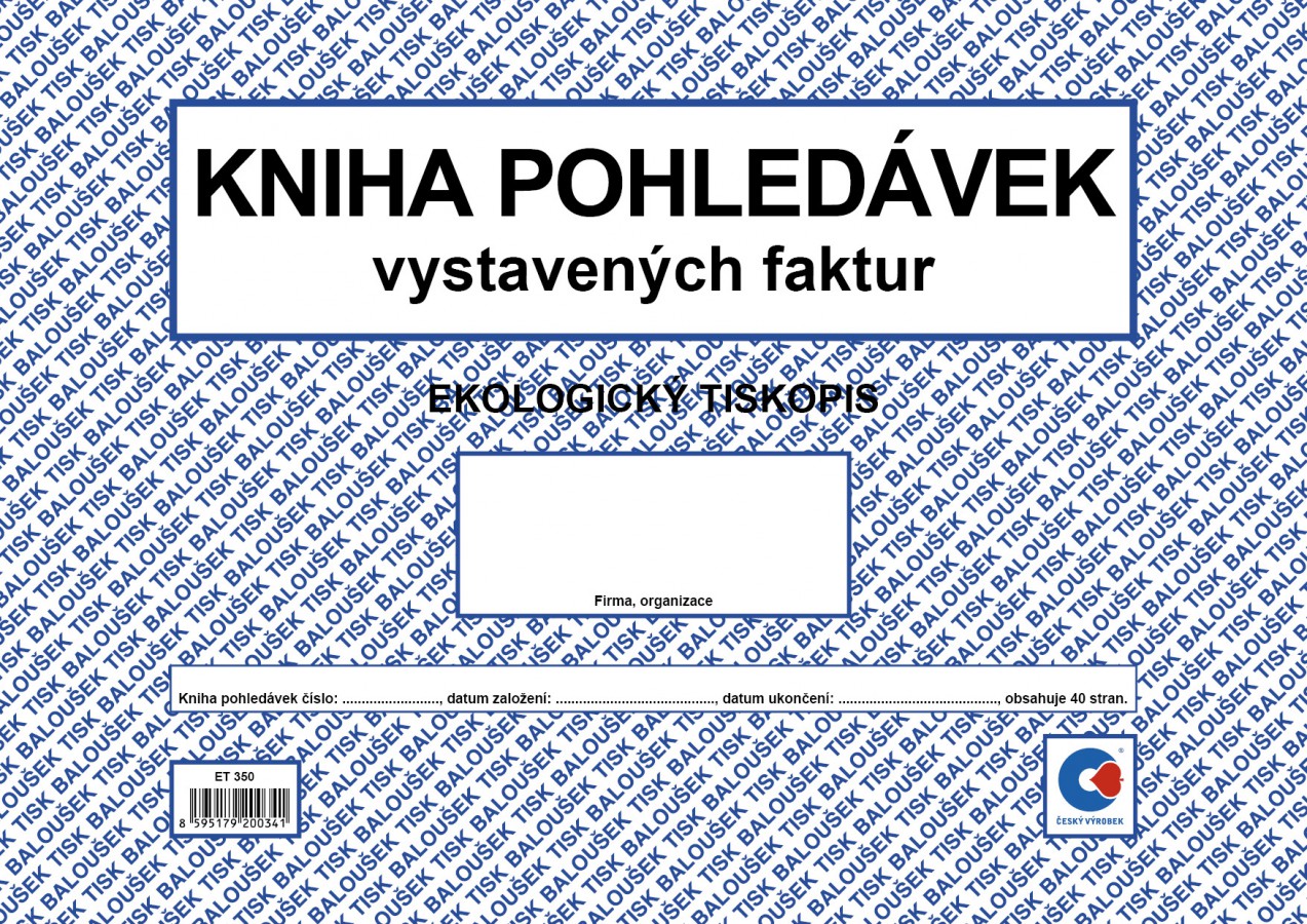 Kniha pohledávek (vystavených faktur), 40 stran, formát A4, ekologický tiskopis.