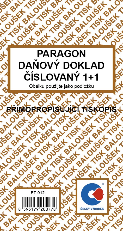 Paragon - Daňový doklad číslovaný 1+1 PT012
