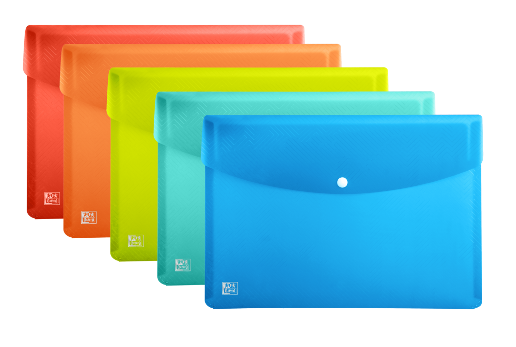 Odolný, pevný, transparentní PP materiál o síle 300 mikronů. Zavírání jedním drukem. Zaoblené rohy se starají o bezpečnost, mix barev, formát A3.