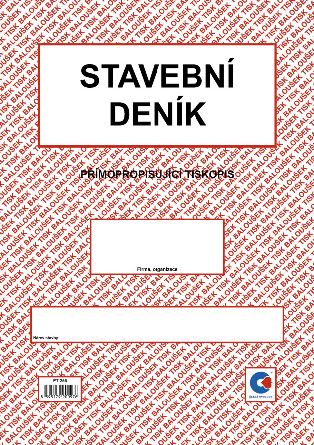 Stavební deník 16 stran+3x20 listů, formát A4, přímopropisující tiskopis.