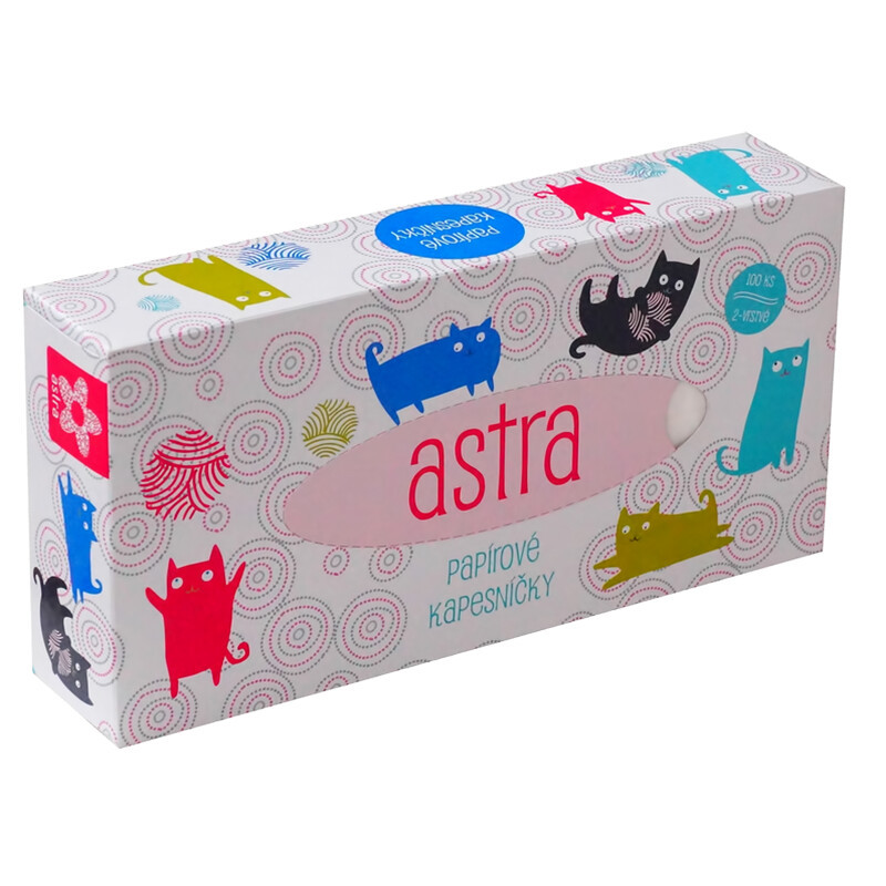 Papírové kapesníky, potištěná krabička, 100 % celulóza, 2 vrstvy, bílá, 210mmx195mm, 1 krabička = 100 ks kapesníčků, cena za 1 krabičku.