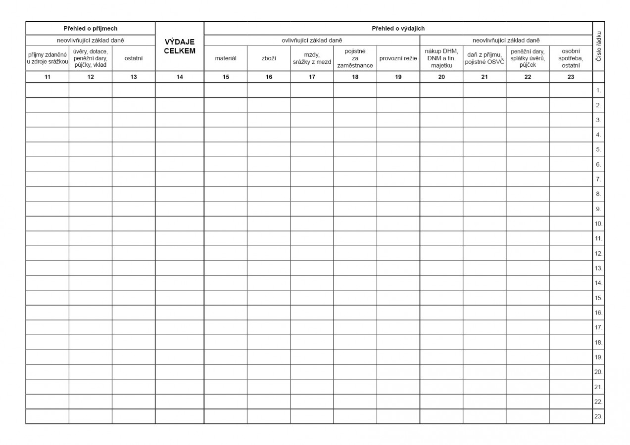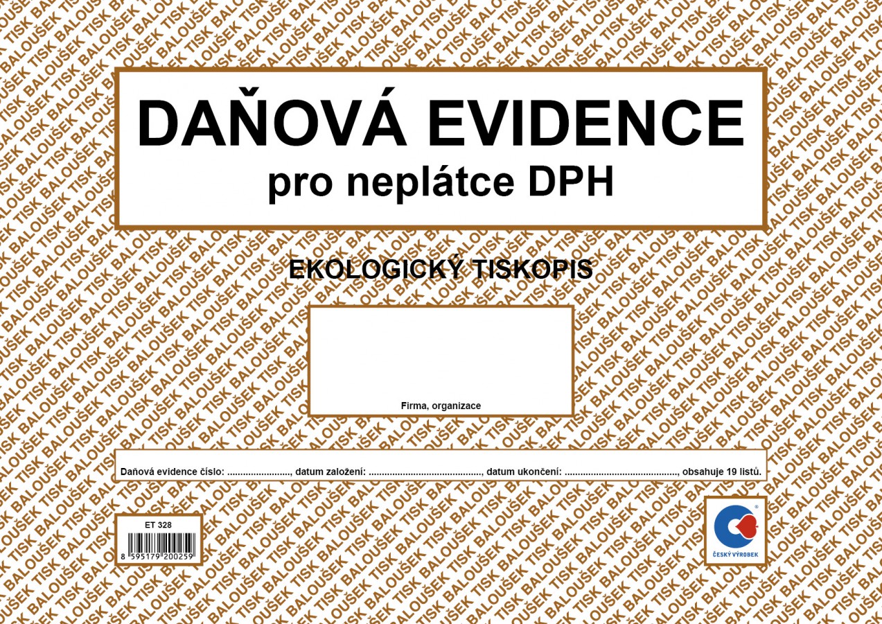 Daňová evidence (peněžní deník) pro neplátce DPH, 20 listů,oboustranný, formát A4, ekologický tiskopis.