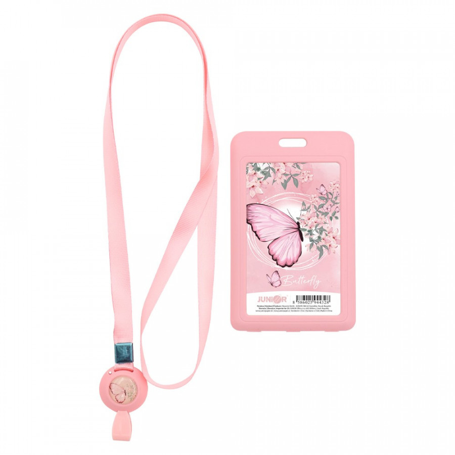 Pouzdro na identifikační kartu se stuhou na krk s natahovacím kolečkem.