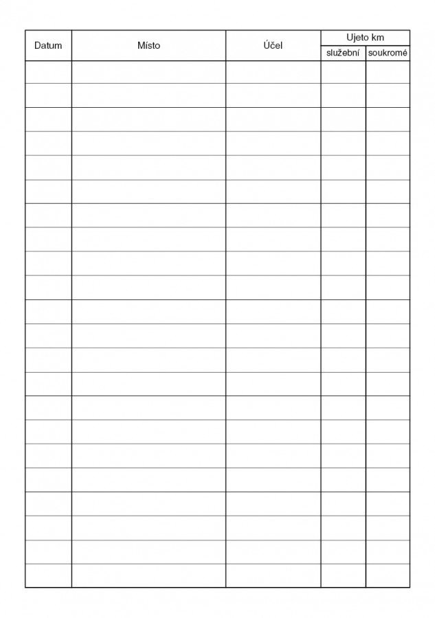 Kniha jízd, 52 stran, formát A5, ekologický tiskopis.