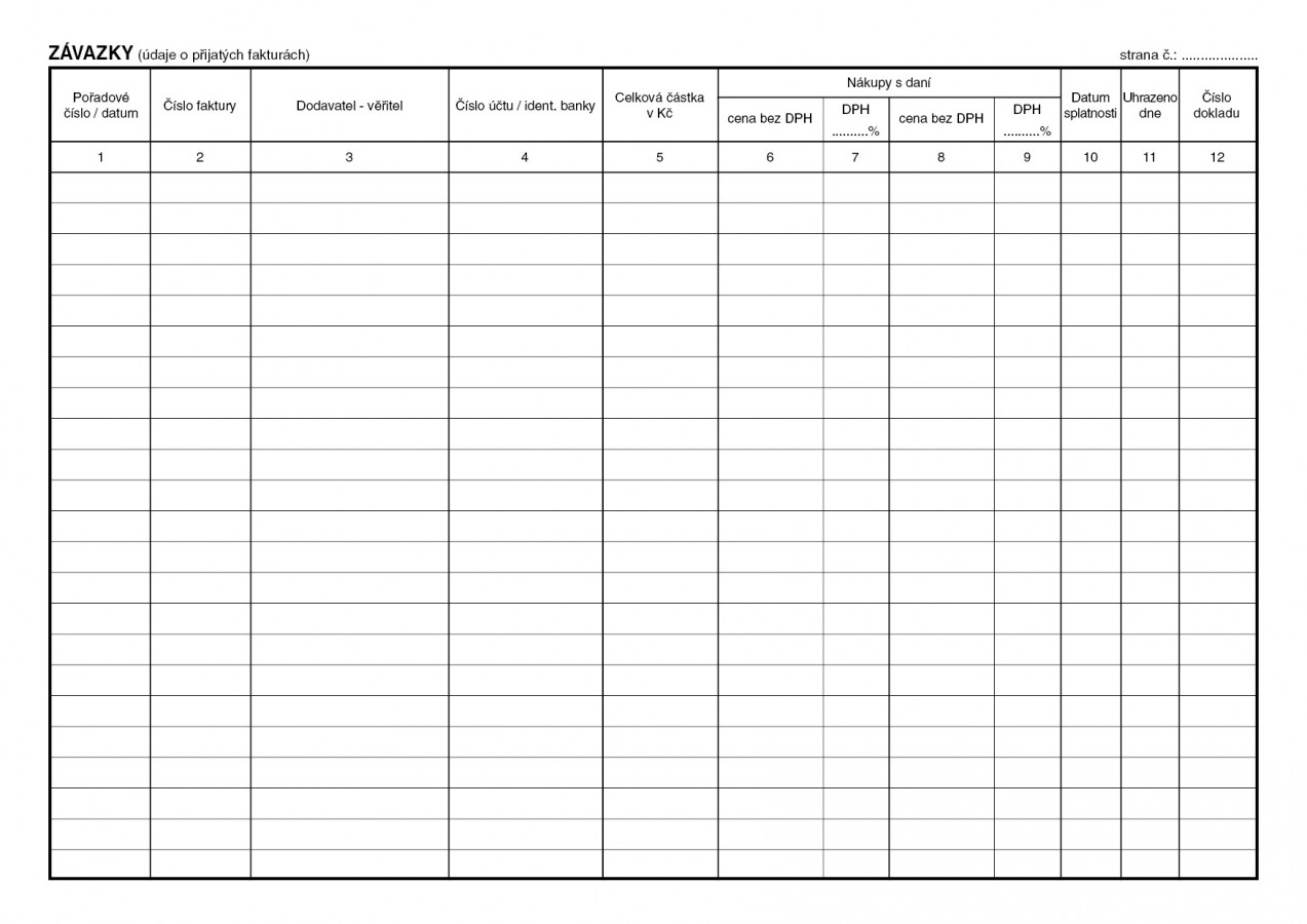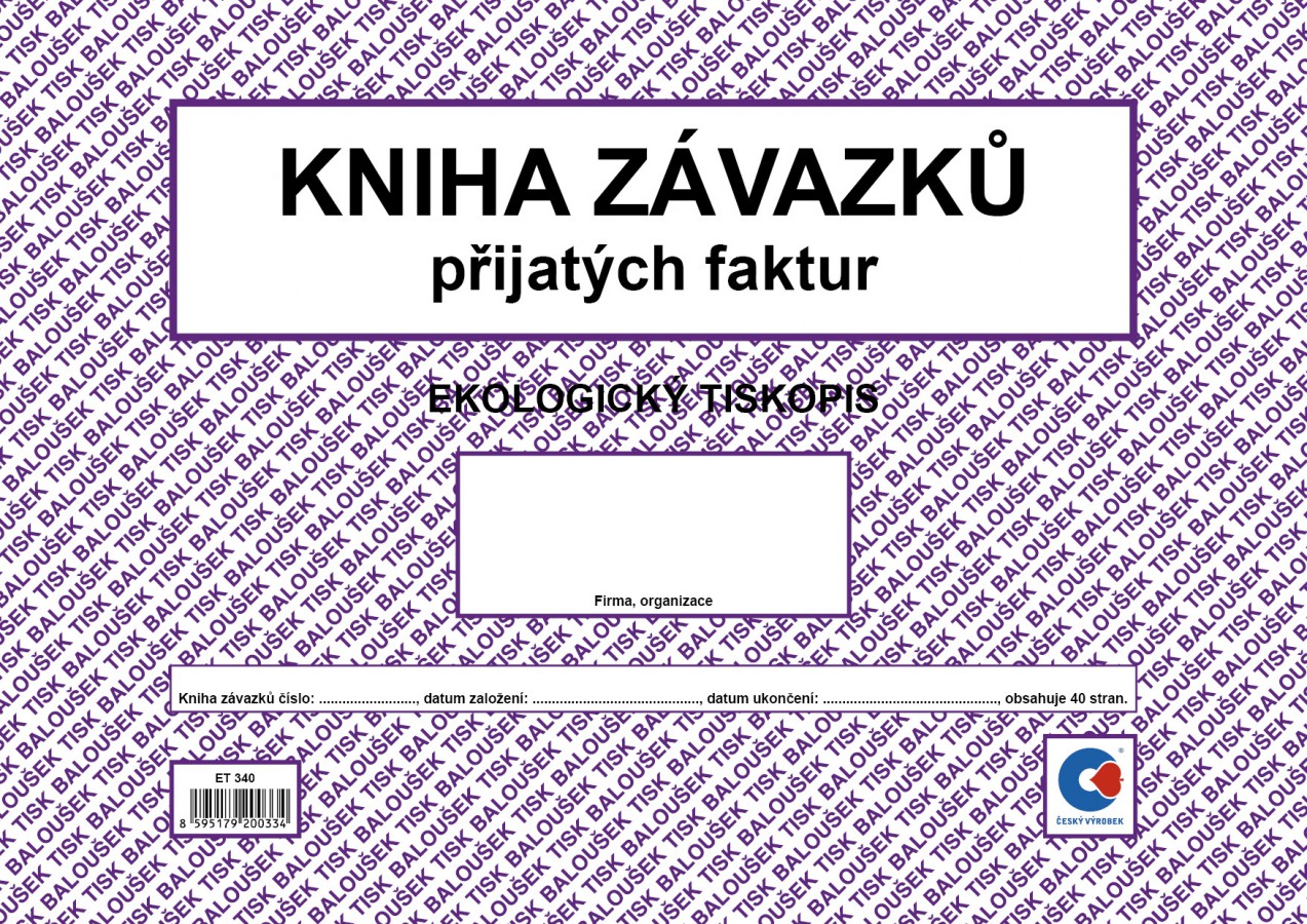 Kniha závazků (přijatých faktur), 40 stran, formát A4, ekologický tiskopis.