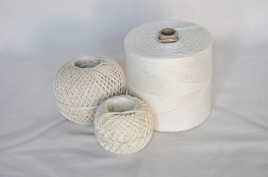 Motouz lněný potravinářský, bílý, hmotnost 40g, návin 60 m/cívka, průměr 1,25 mm. Výrobce: JUTA