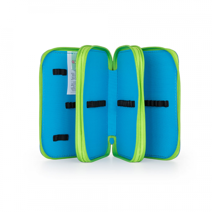 Školní penál třípatrový bez náplně. Penál obsahuje 40 gumových poutek pro uložení všech psacích potřeba a drobností potřebných k výuce. Penál má pevný zip s velkými taháčky pro snadnou manipulaci. Jedno patro je opatřeno průhlednou přihrádkou pro týdenní rozvrh. Rozměry 20x13x7 cm.