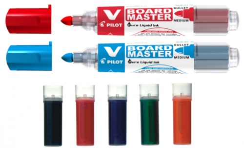 Náplň pro popisovače na bílé tabule V-BOARD MASTER. Náplň na alkoholové bázi, nevystavujte vysokým teplotám, držte dál od dětí a ohně. Skvrny na oblečení od inkoustu nemusí být odstranitelné. Barvu náplně uveďte prosím v poznámce (černá, červená, modrá, zelená, oranžová).