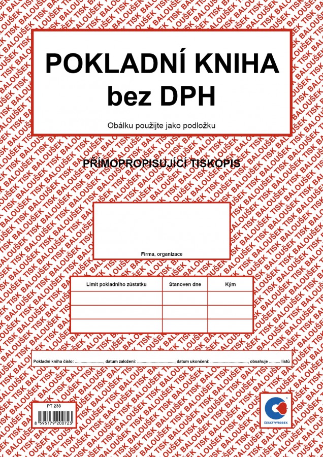 Pokladní kniha bez DPH 50 listů, formát A4, přímopropisující tiskopis.
