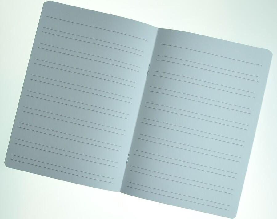 A5, 20 listů, linka 20mm, jedna pomocná linka, bezdřevý papír 70 g/m2, obálka 150 g/m2, kulaté rohy