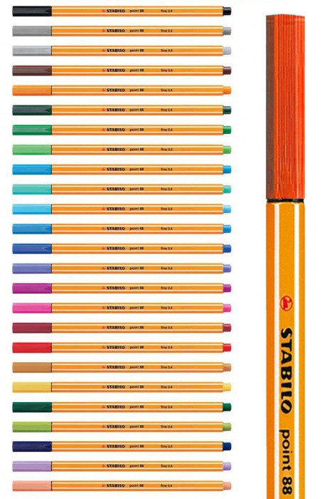 STABILO point 88 jemný liner červená 40. Jemný inkoustový liner. Nezaměnitelný šestihranný design s bílými pruhy.