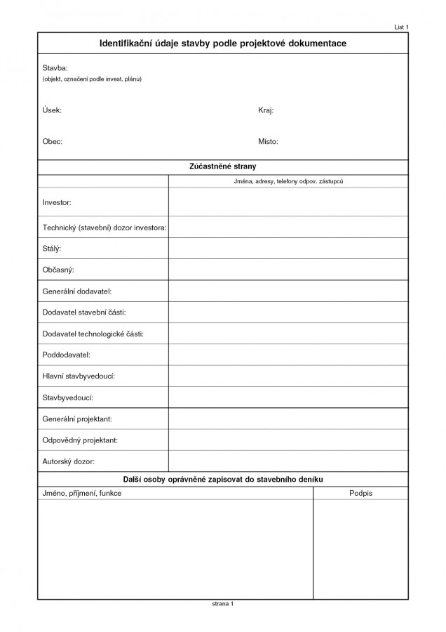 Stavební deník 16 stran+3x20 listů, formát A4, přímopropisující tiskopis.
