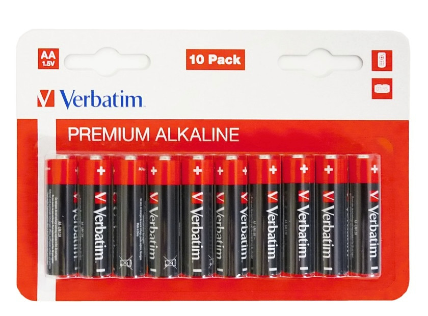 Alkalické baterie Verbatim Premium AA balení 10ks Tužkové 1,5V baterie v multipacku od Verbatim.  Uvedená cena za balení 10ks.
