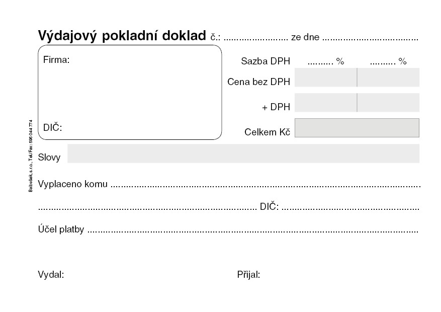 Výdajový pokladní doklad PT040